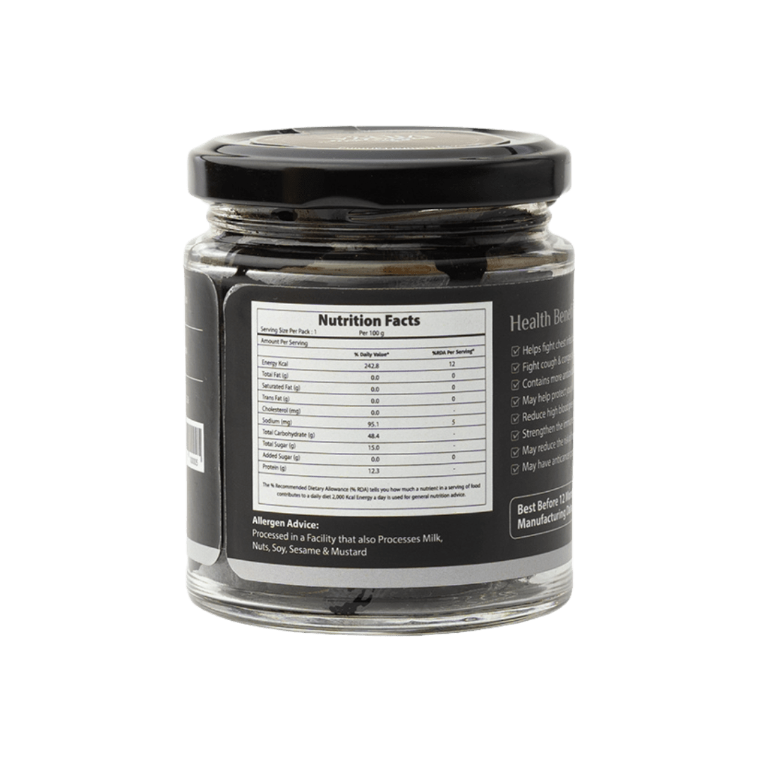 Black Garlic is said to have antioxidant and anti-inflammatory properties. Regular consumption is also said to support heart health, digestion, and immunity.