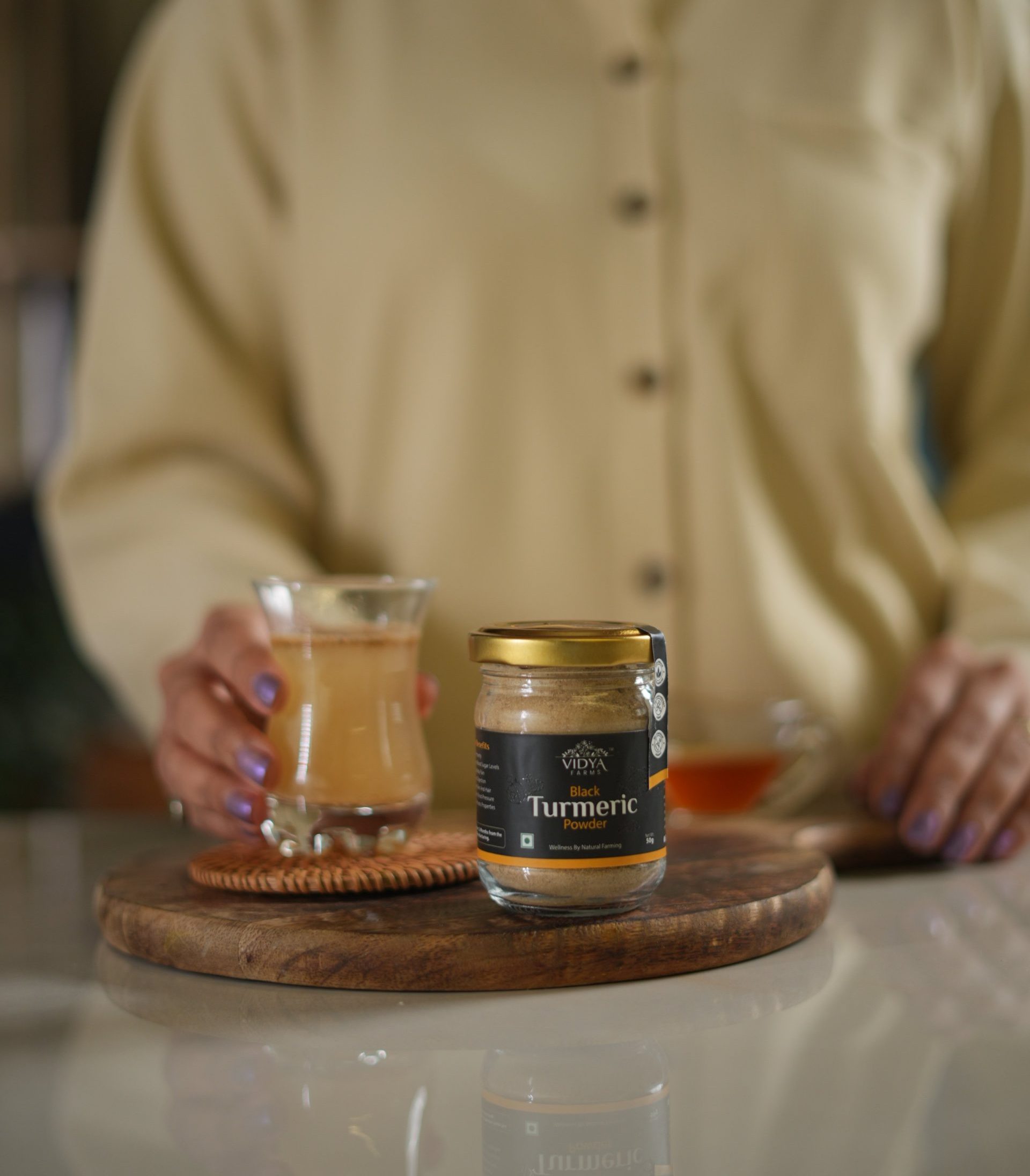 You can add a small amount of black turmeric to warm water, herbal teas, kadhas, or wellness shots. Always start small and increase gradually.